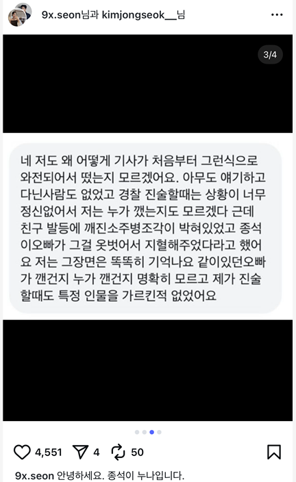 - “소주병을 깬 사람은 김종석이 아니며, 오히려 상황을 수습했다”는 지인 진술도 함께 공개됨