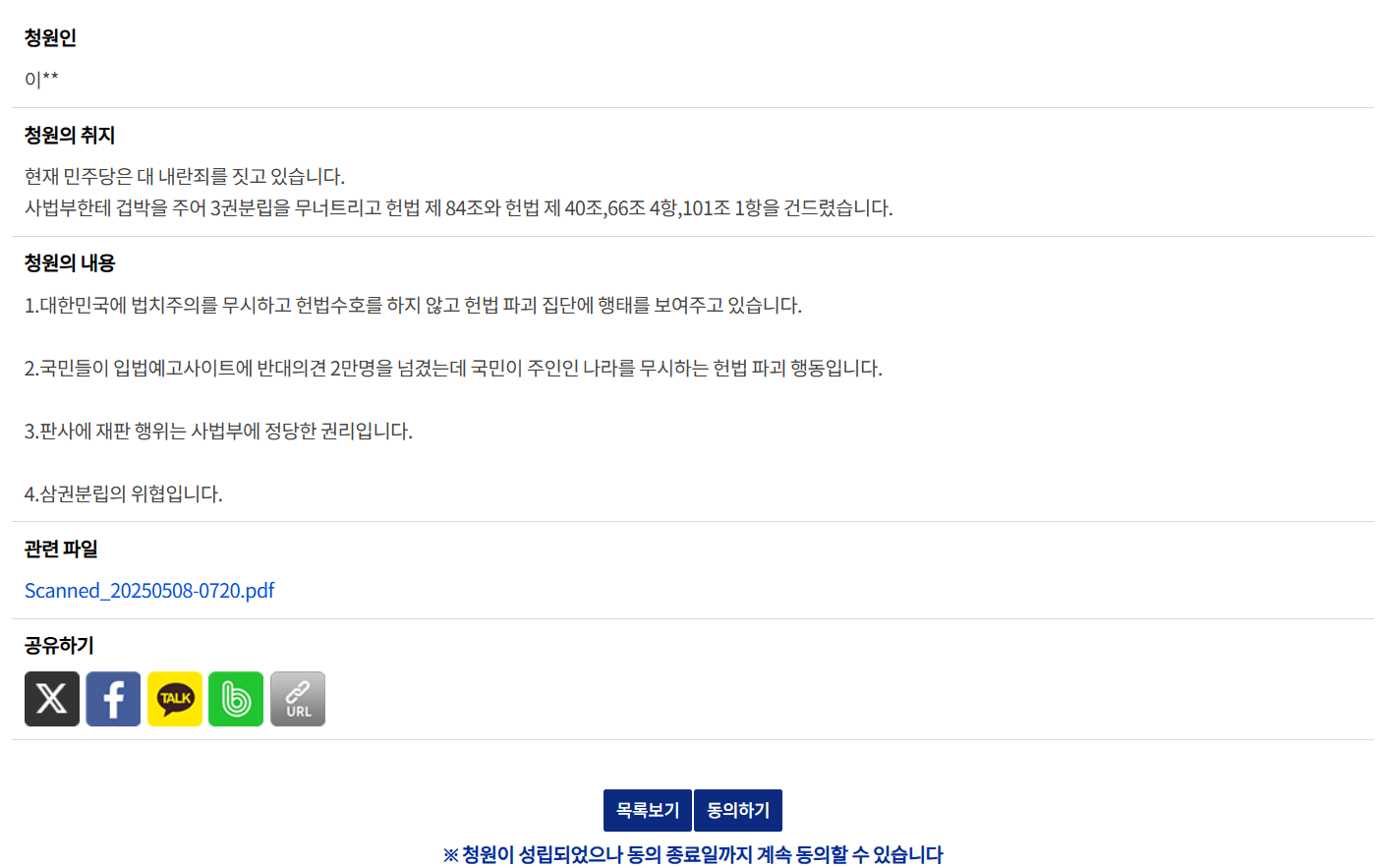 - 청원 사이트에 폐기 요구