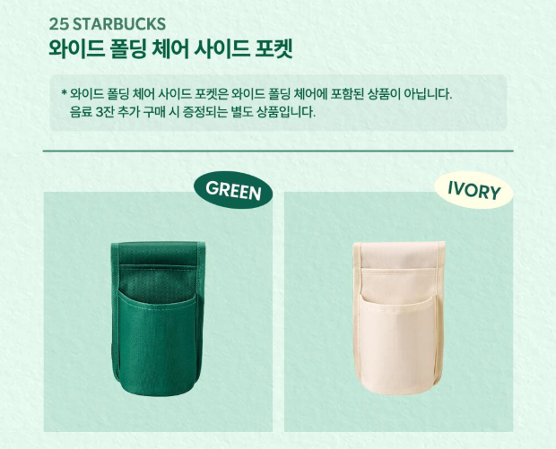 ✔️ 음료 3잔 추가 구매 시 ‘사이드 포켓’ 굿즈 1종 추가 증정 - 굿즈 종류: