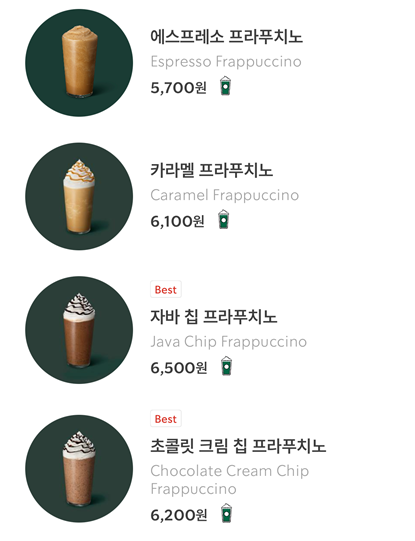 프리퀀시에서 가장 까다로운 조건이 바로 ‘미션 음료 3잔 포함’입니다. 이때는 가장 저렴한 음료로 구성하는 것이 핵심입니다.