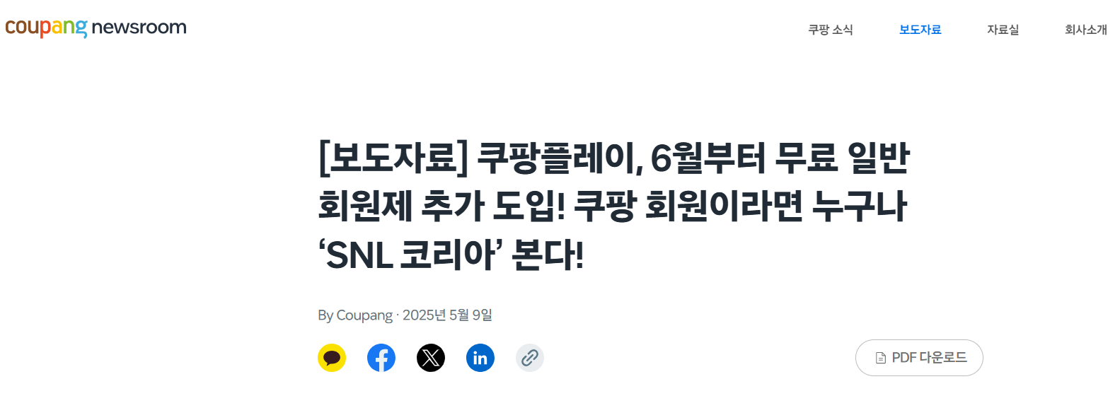 2025년 6월부터 쿠팡플레이가 일반회원에게도 전면 무료로 개방됩니다.