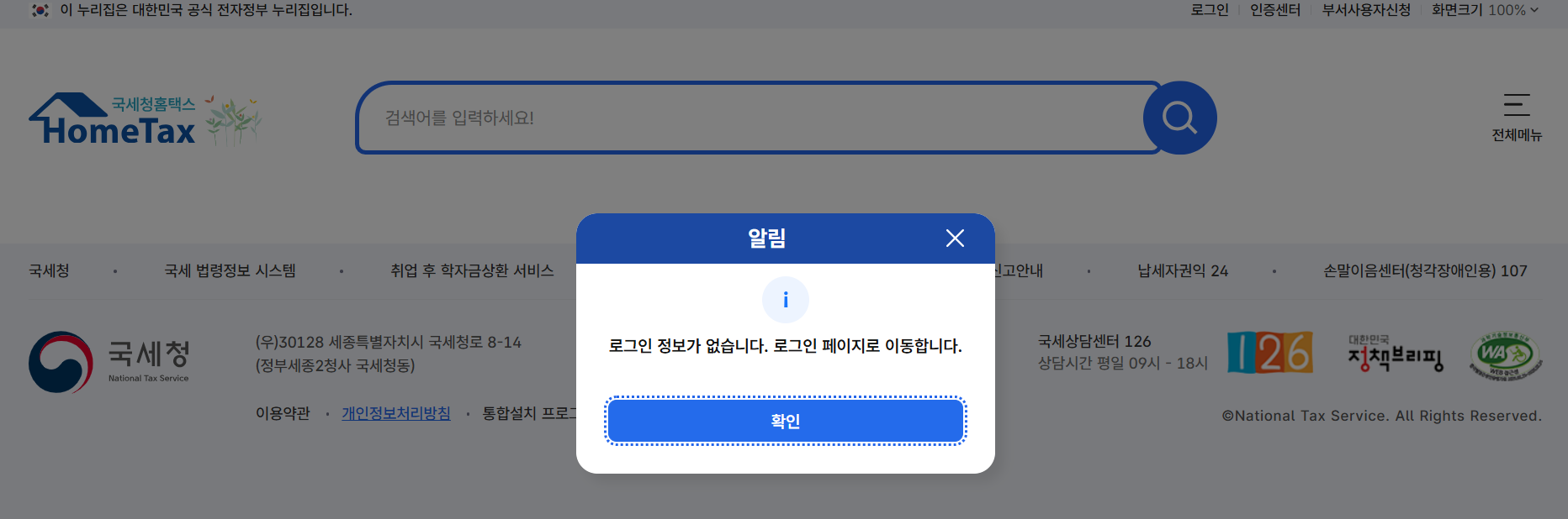 1. 위 링크는 로그인만 하면 바로 근로 자녀장려금 신청대상 여부 조회가 가능해요. 클릭하면 바로 위와 같은 알림창이 뜨면 확인을 누르세요!