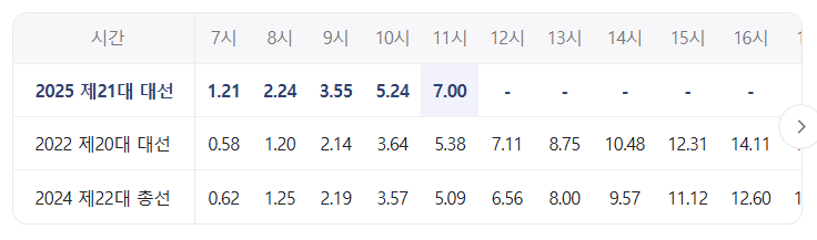 5월 29일 오전 11시 기준, 전국 평균 사전투표율은 7.00%를 돌파하며 역대 최고 수준을 기록 중입니다.