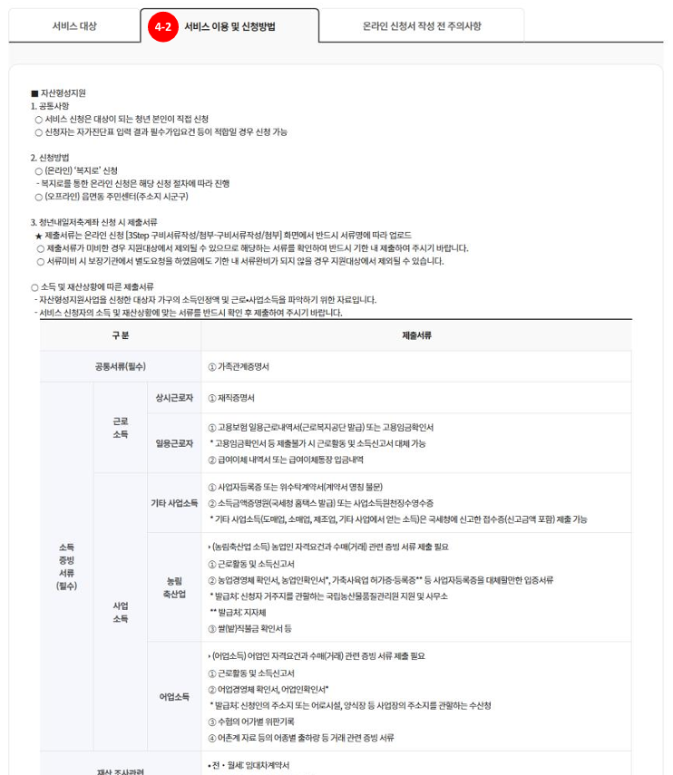 - 복지로 + 자산형성포털 활용 필수