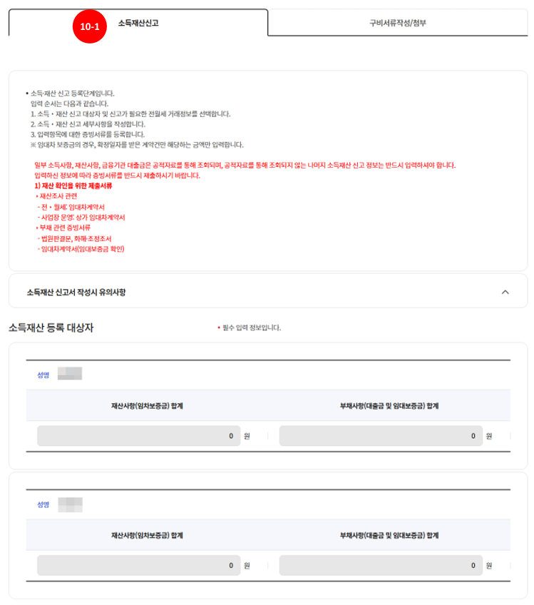- 소득·재산 신고서