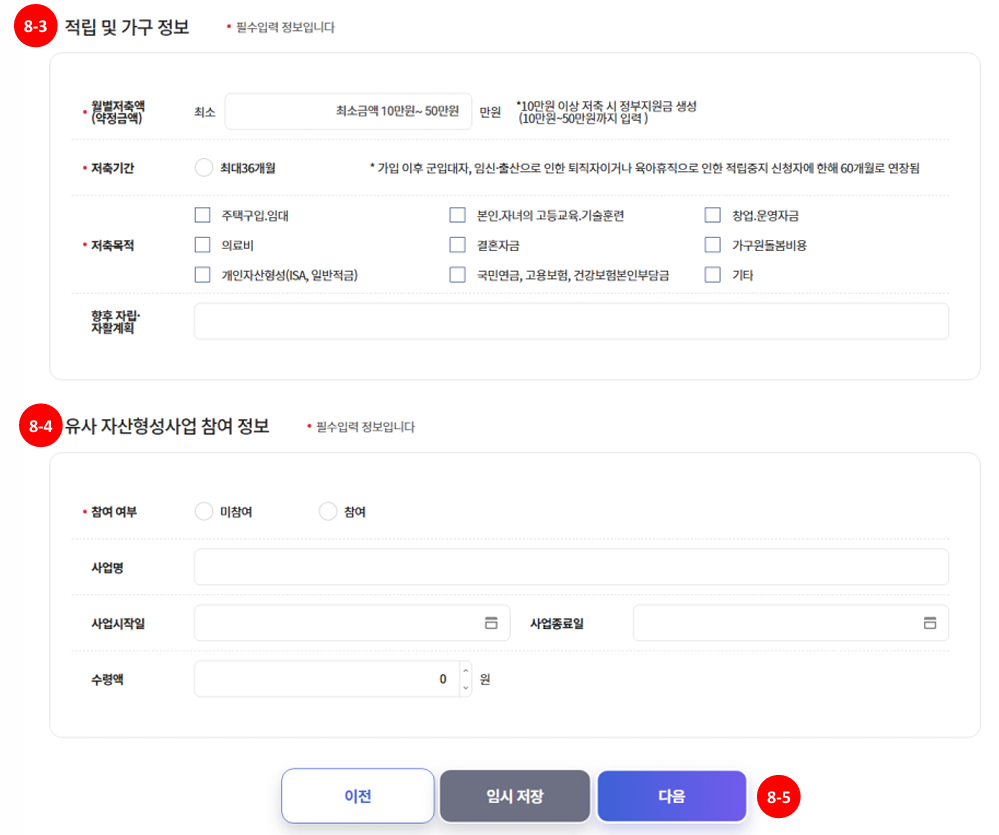 | 저축 시작 | 8월 1일 ~ 22일 사이 본인 저축 개시 |